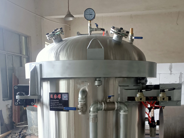 ●濕真空處理:用真空把膠液吸進浸滲罐內,膠液的液面高出浸滲籃中零件40-50mm為準,繼續抽真空至-0.098mpa左右,保壓5分鐘,然后緩慢卸下至常壓。